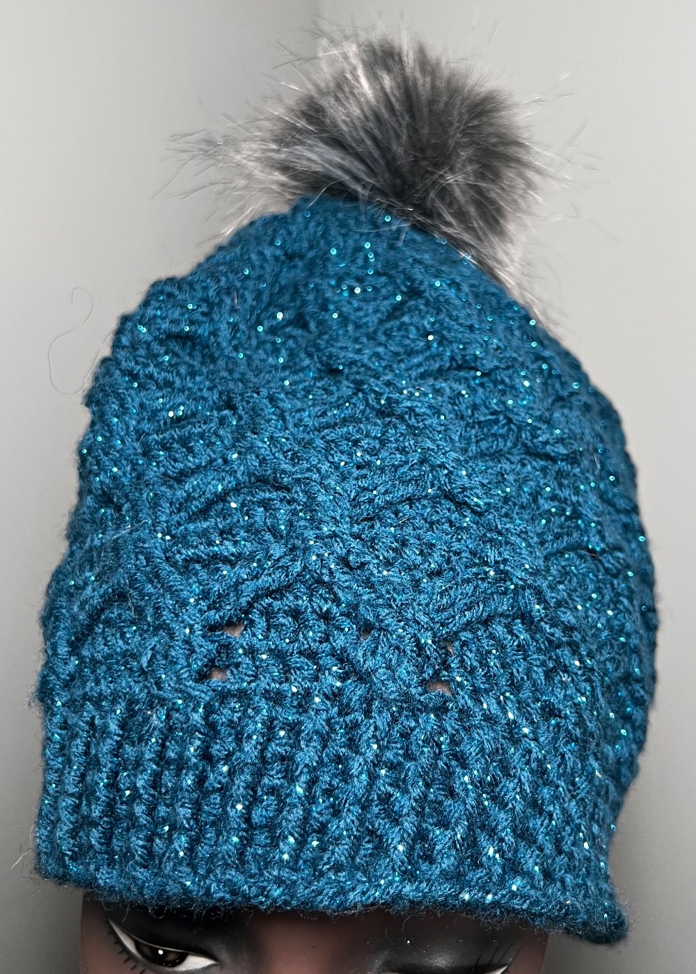 Dark Teal Sparkle with Dark Gray Removable Pom-Pom